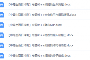 此课件来自《百日冲系列》生物中等生高考备考百日捷进Word版,此课件包括:细胞的生命历程、光合作用与细胞呼吸、酶和ATP、物质的输入与输出、细胞的结构与功能、细胞的分子组成。