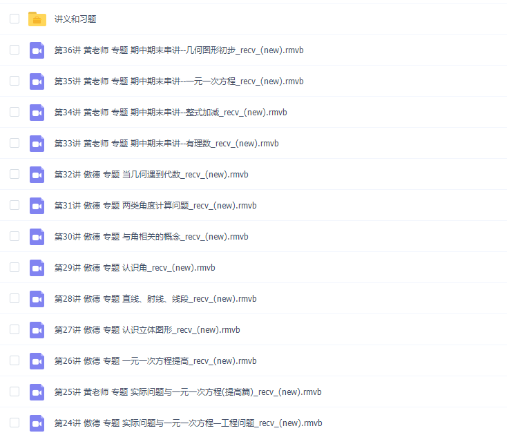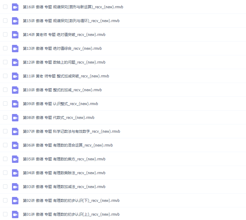 傲德老师数学课视频 网盘资源 傲德老师讲数学视频百度云资源网盘下载 傲德初一数学满分冲刺上学期高清视频课程